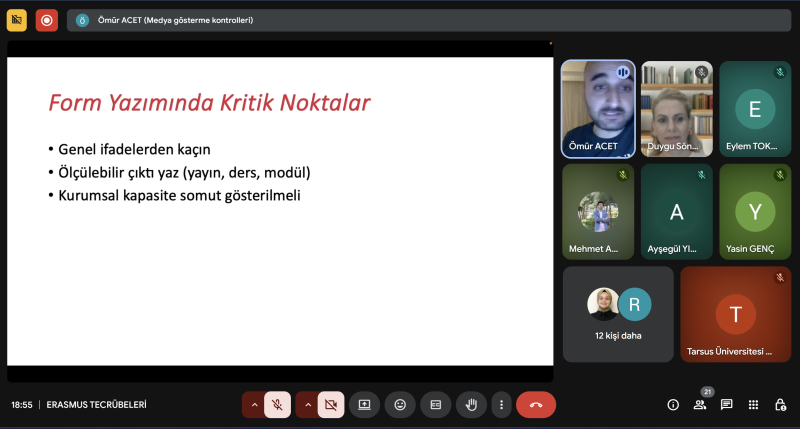 Webinarlar kapsamında, Erasmus+ hareketlilik programları ve COST eylemlerine ilişkin deneyim paylaşımları yapılarak, katılımcılara hareketlilik süreçlerinin akademik ve idari boyutları hakkında kapsamlı bilgilendirme sunuldu. Etkinliklerde özellikle başvuru süreçleri, uygulama aşamaları, karşılaşılabilecek olası durumlar ve iyi uygulama örnekleri ele alındı.